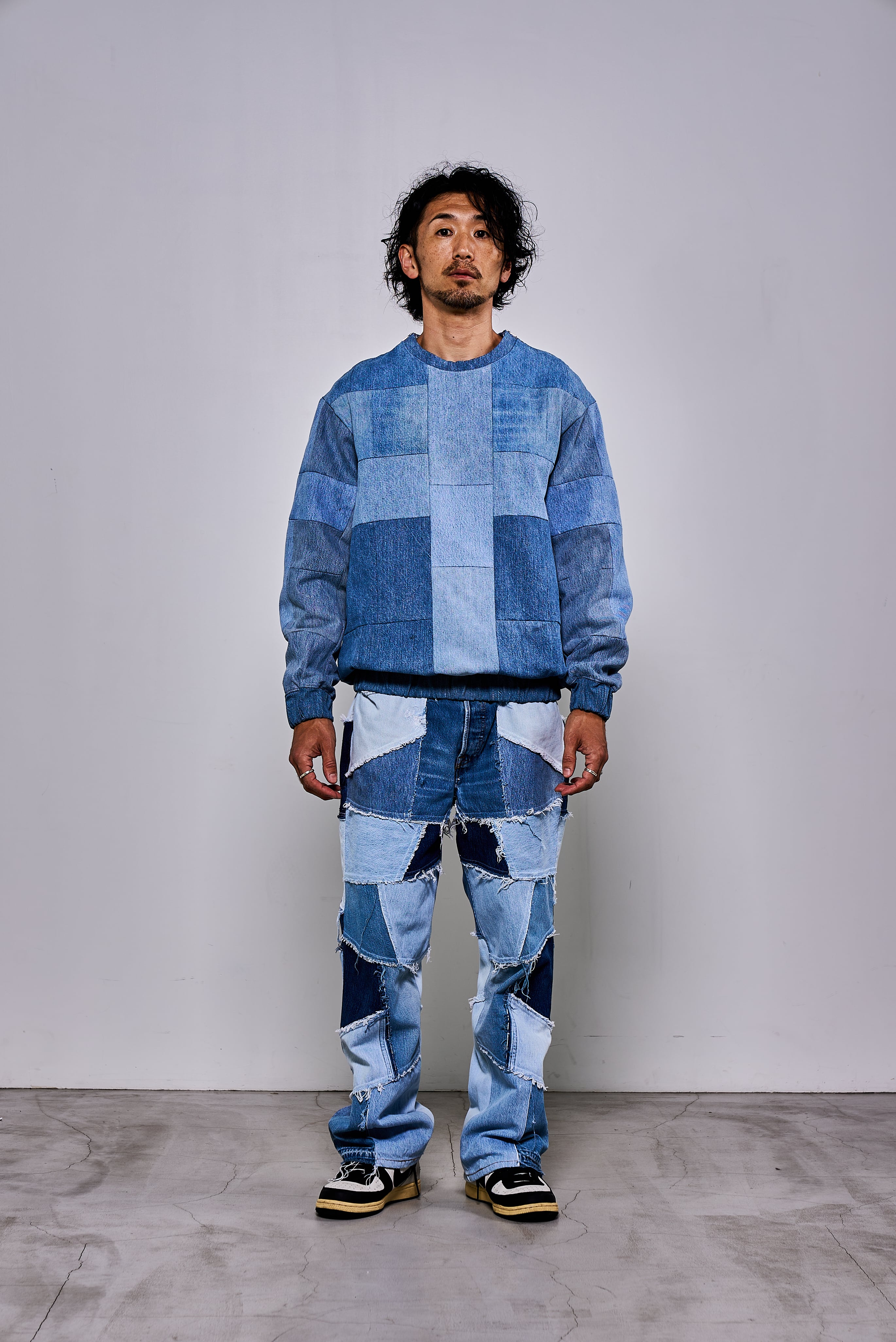 Street icon shoulder zip-up Denim Sweat デニムスウェット